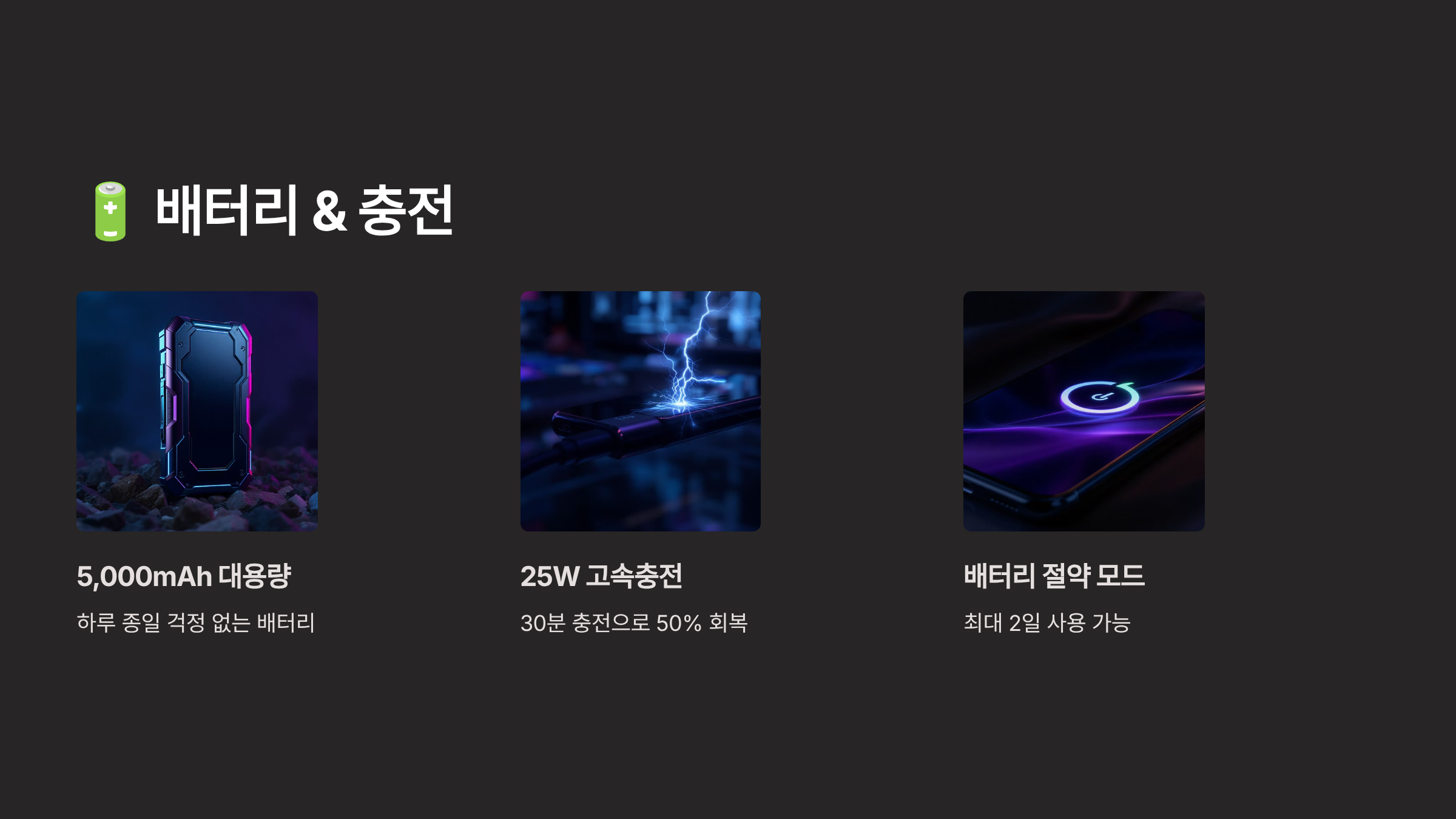 | 배터리 | 5000mAh | 25W 고속충전 지원 |
