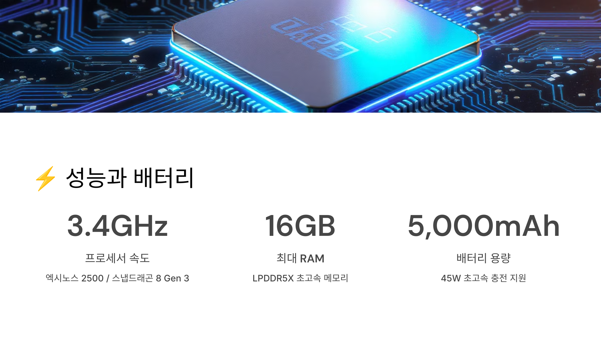 | 프로세서 | 스냅드래곤 8 Gen 3 | 스냅드래곤 8 엘리트 | 35% 성능 향상 |