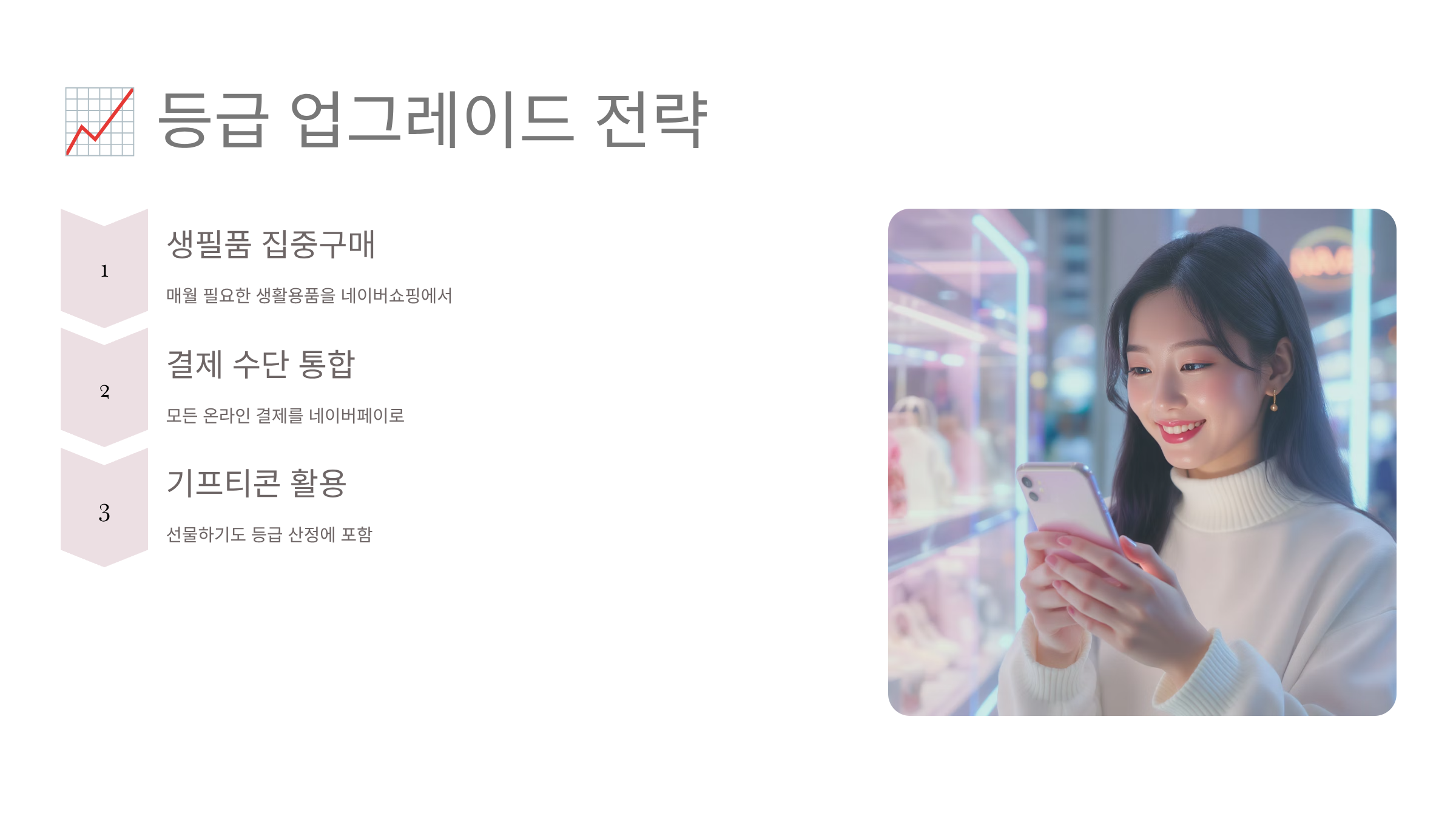 네이버멤버십 등급을 효과적으로 올리려면 전략적인 접근이 필요해요. 단순히 돈을 많이 쓰는 것보다 어떻게 쓰느냐가 더 중요하답니다. 등급 산정 기준은 최근 3개월간의 활동을 종합적으로 평가하는데, 결제 금액뿐만 아니라 결제 횟수, 이용 서비스의 다양성도 함께 고려돼요.