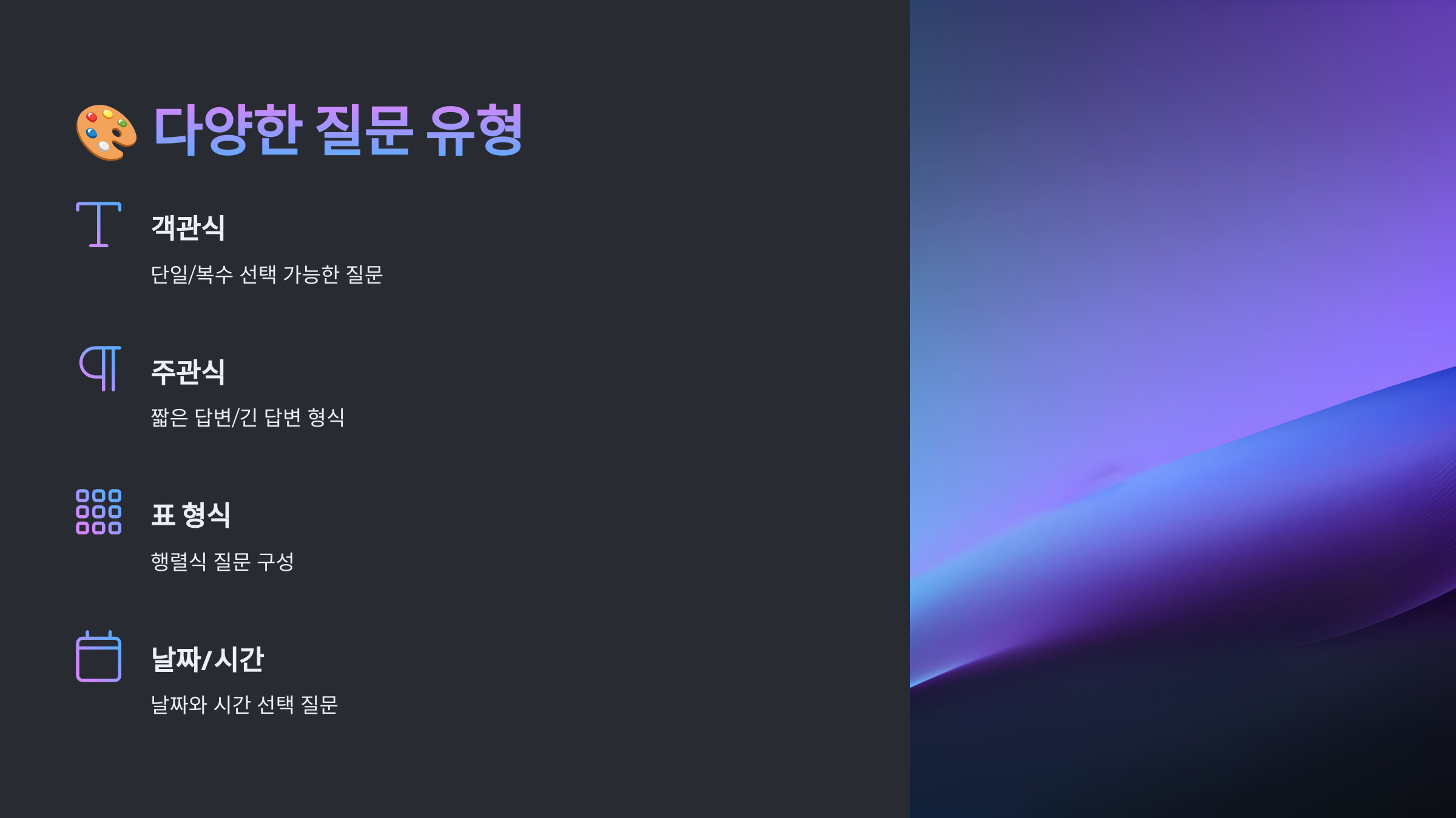 🎨 다양한 질문 유형 활용법