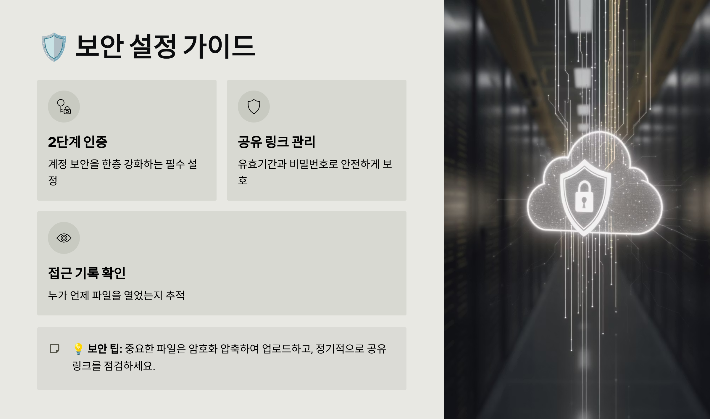 보안 설정도 꼼꼼히 확인해야 해요. 2단계 인증은 꼭 설정하고, 중요한 파일은 '금고' 기능을 활용해서 추가 보안을 적용하세요. 금고에 넣은 파일은 별도 비밀번호나 생체 인증을 통해서만 접근할 수 있어서 더욱 안전하답니다.