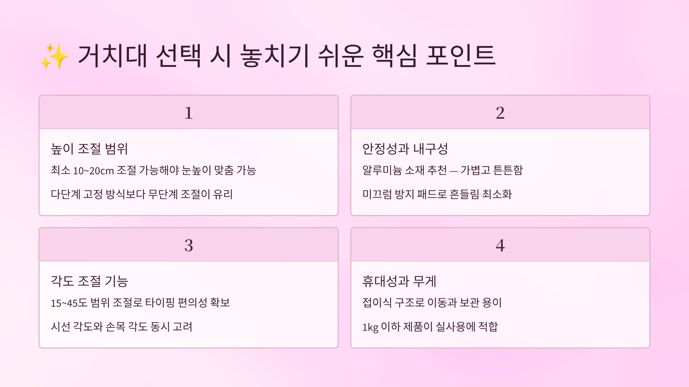 ✨ 거치대 선택 시 놓치기 쉬운 핵심 포인트