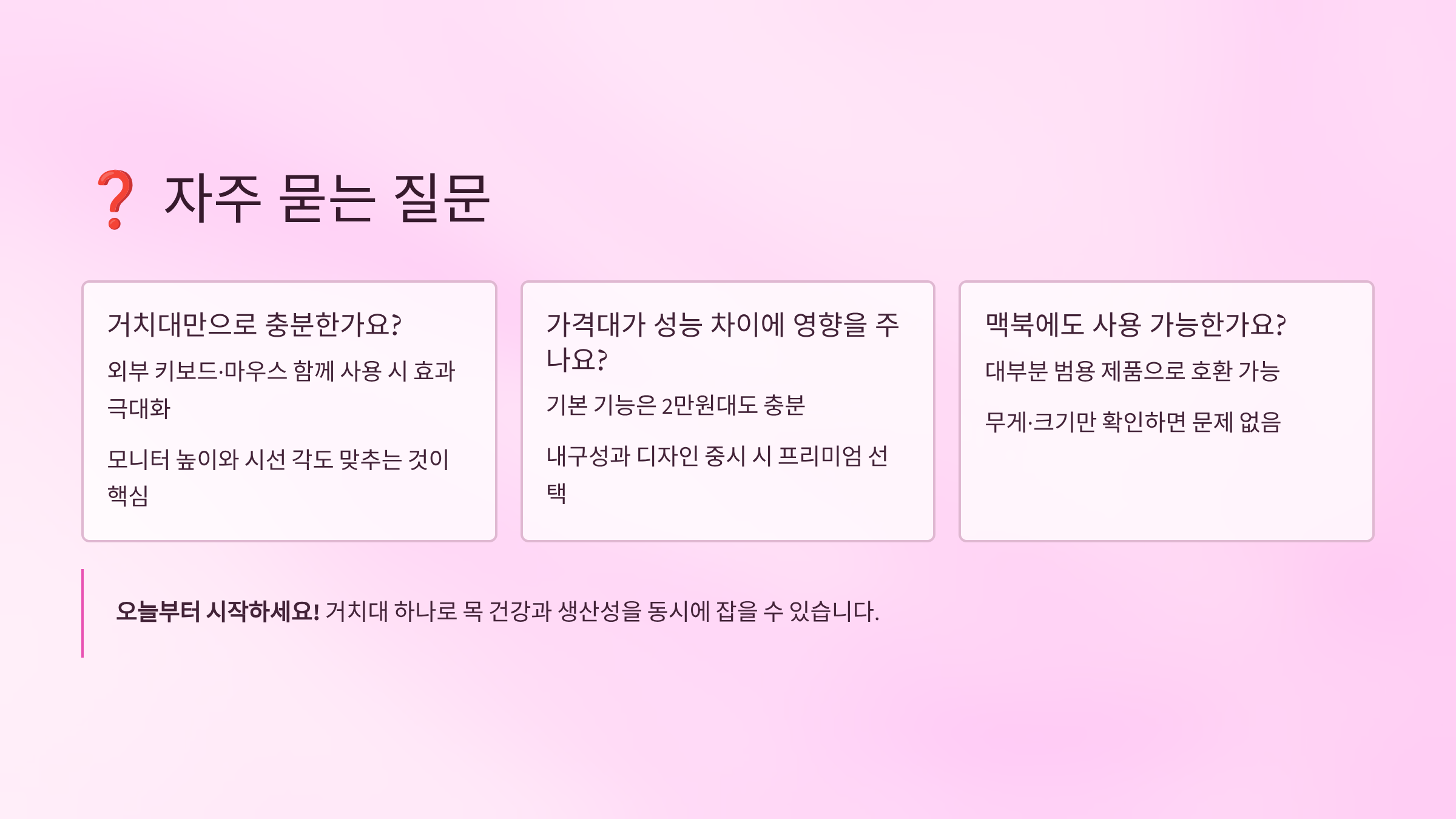 A1. 하루 2시간 이상 노트북을 사용한다면 필수예요! 거북목 예방과 생산성 향상 효과가 확실해요. 의료비 절감 효과까지 고려하면 투자 가치가 충분합니다.