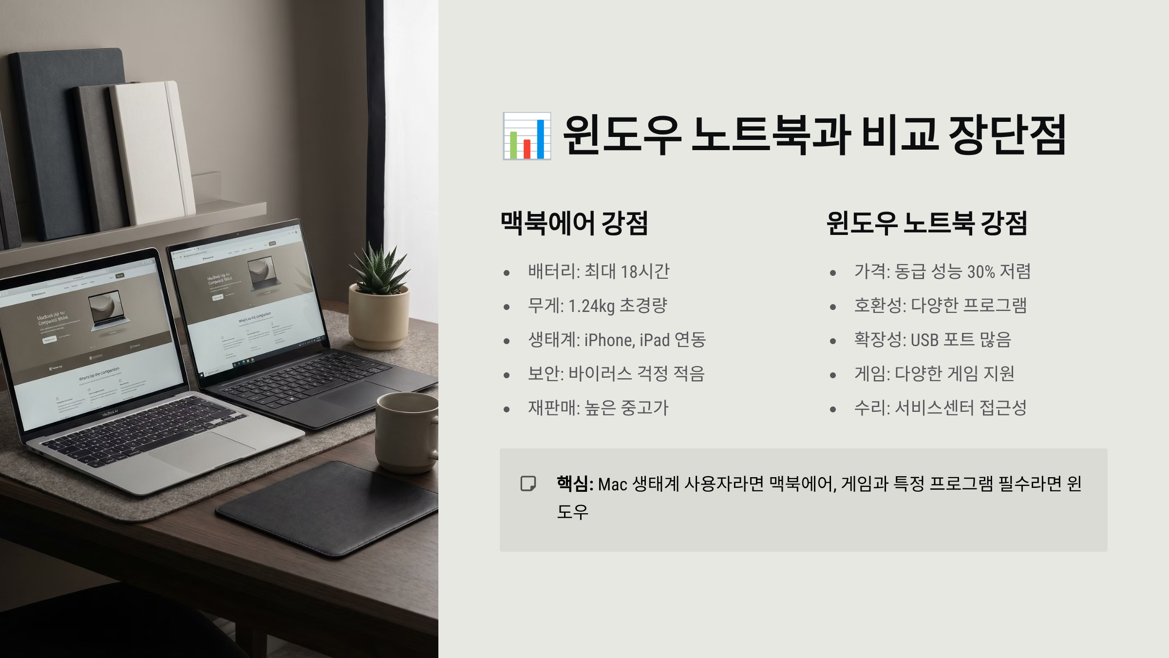 📊 윈도 노트북과 비교했을 때 장단점