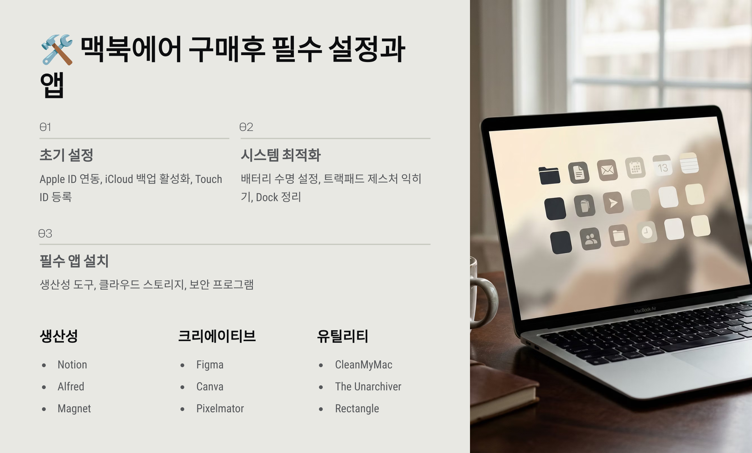 🛠️ 맥북에어 구매 후 필수 설정과 앱