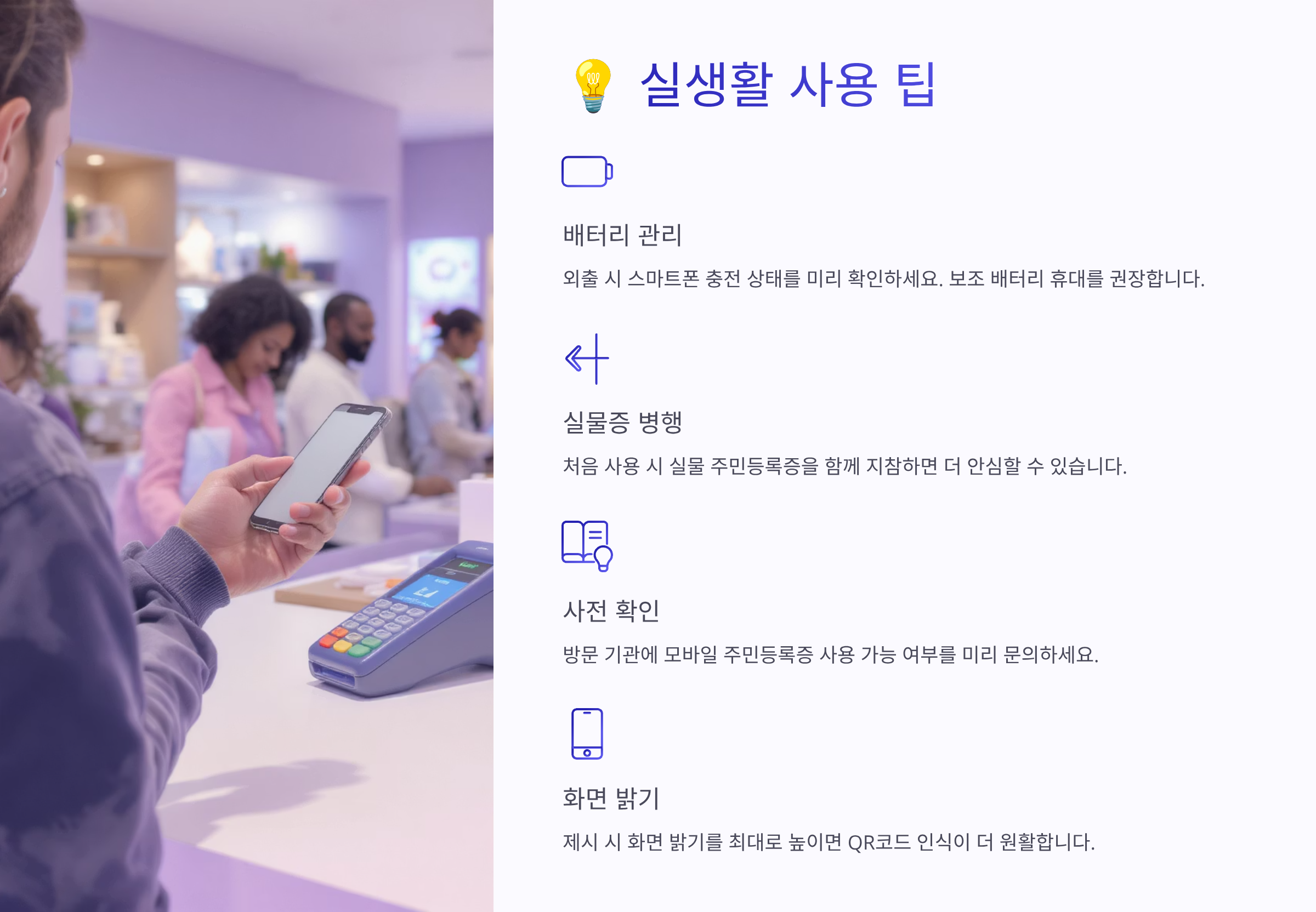 A4. 2025년 현재 대부분의 공공기관과 주요 은행, 병원에서는 사용 가능해요. 하지만 일부 소규모 업체나 지방 기관에서는 아직 시스템이 구축되지 않은 곳도 있습니다. 2026년까지는 완전히 보편화될 예정이니, 당분간은 실물도 함께 소지하는 것이 안전해요.