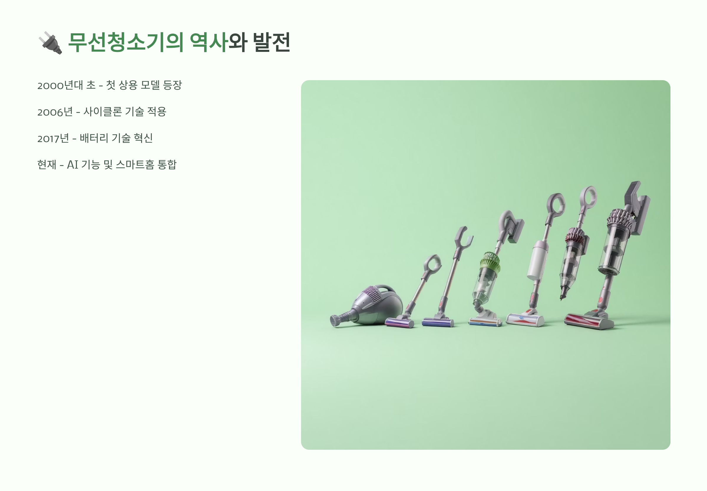 📊 무선청소기 기술 발전 연표