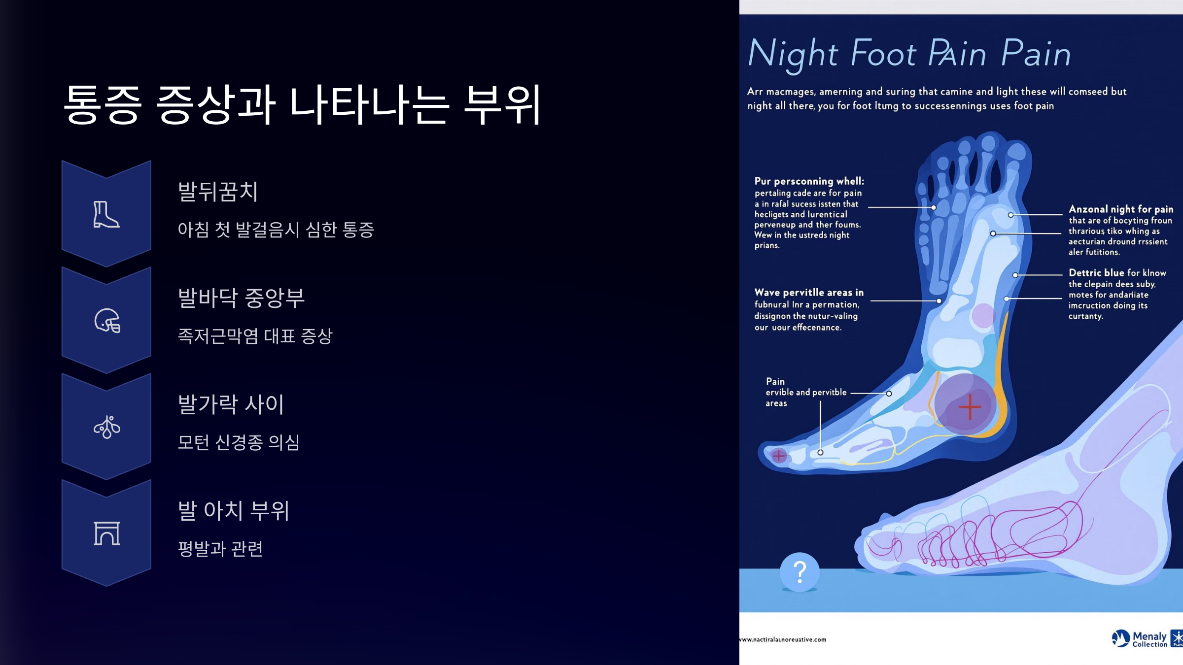 하지만 시간이 지날수록 활동량이 많아지면 통증도 다시 심해지는 경향이 있어요. 걸을 때마다 유난히 특정 부위가 아프거나 눌렸을 때 통증이 심해진다면 근막이나 신경, 인대에 문제가 있을 수 있어요.