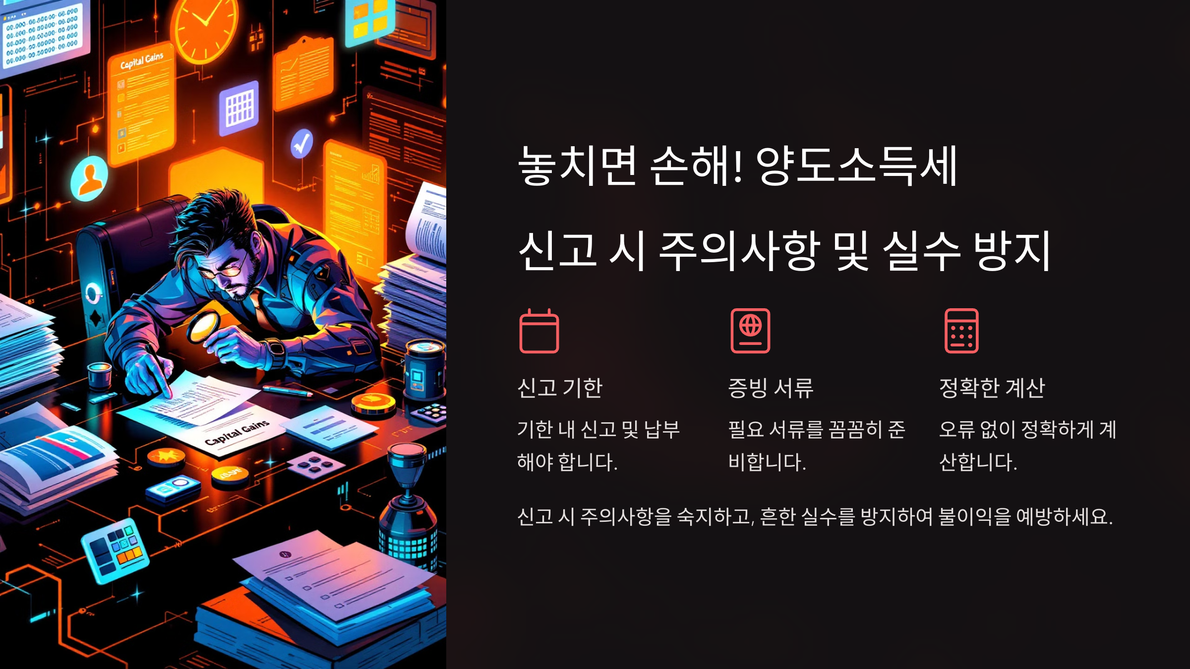 양도소득세를 계산하고 신고할 때 자주 하는 실수를 미리 알아두면 불필요한 세금 부담을 줄일 수 있어요. 💡