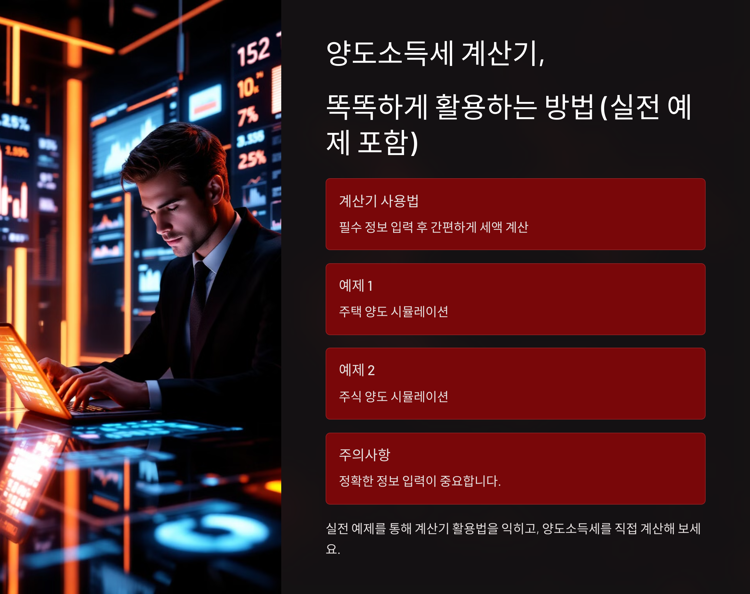 이번 가이드에서는 양도소득세 계산기의 사용법과 절세 방법, 주의사항 등을 상세히 알려드릴게요. 💡📊