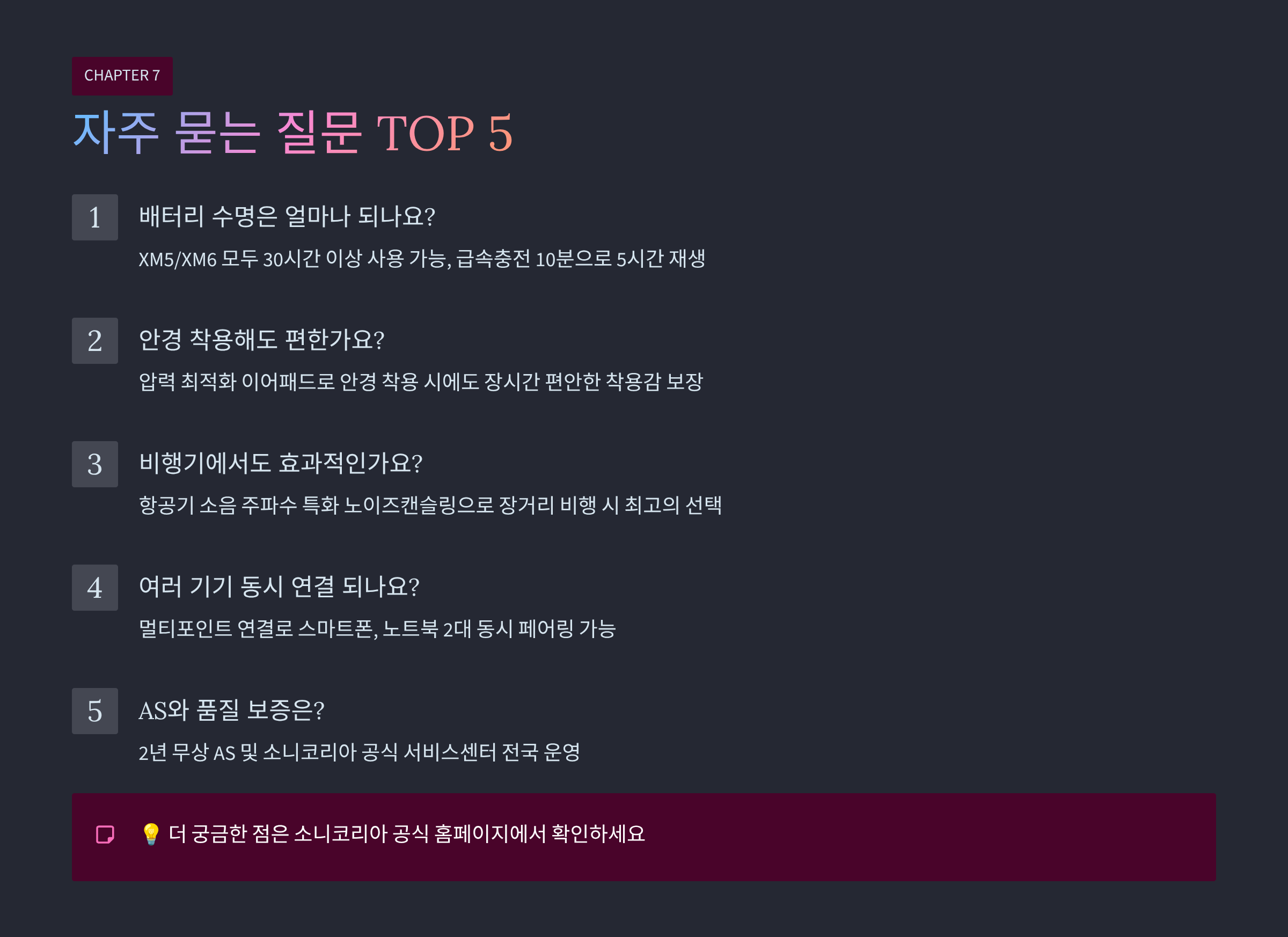 결론적으로 예산이 충분하고 최신 기능이 필요하다면 XM6를, 가성비를 중시한다면 XM5를 추천해요. 특히 접이식 디자인과 LE Audio, 향상된 통화 품질이 필요한 분들은 XM6가 좋고, 순수하게 음악 감상만 한다면 XM5로도 충분히 만족스러운 경험을 할 수 있어요.