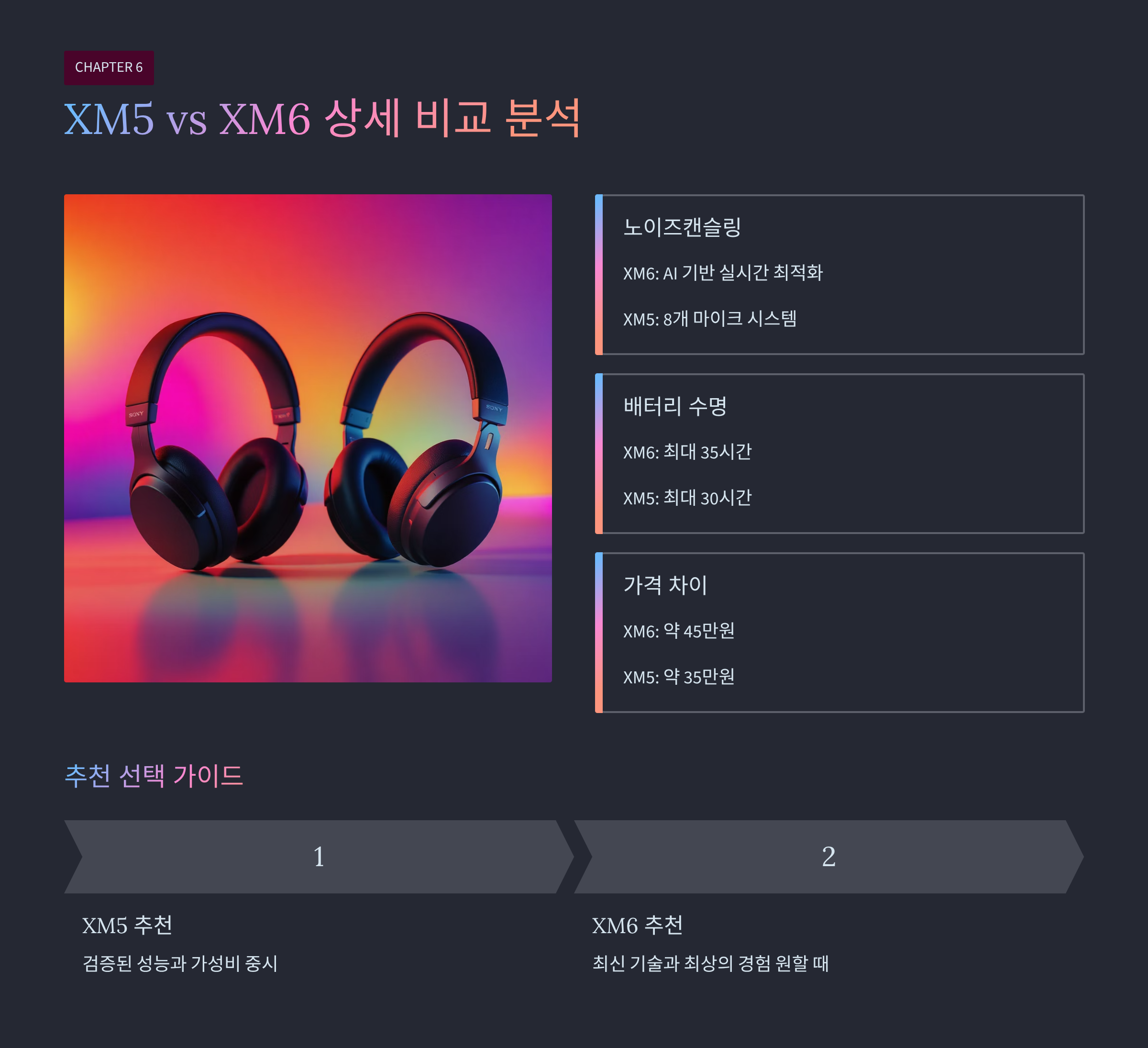 | 예산 고민 | XM6 vs XM5 가격 차이 | 필요 기능 우선순위 정하기 |