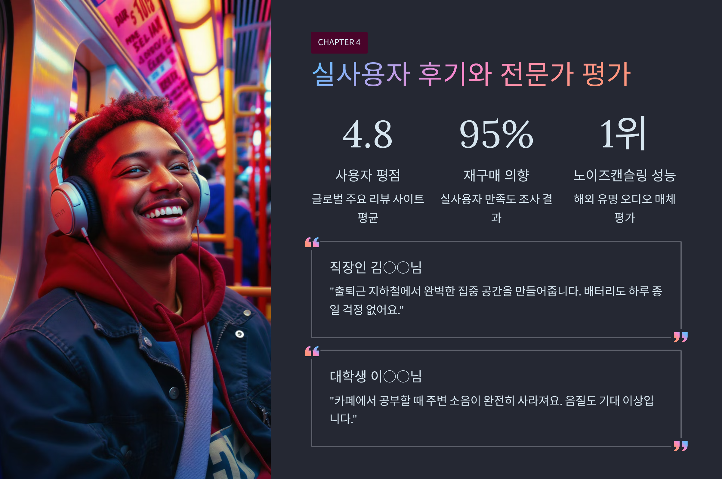 | RTINGS | 8.6/10 | 노이즈캔슬링 업계 최고 |