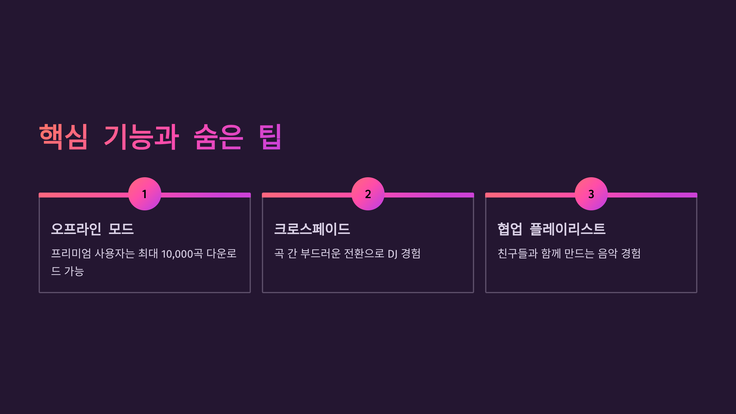 | Radio 기능 | 시드 곡 기반 확장 | 중간 |