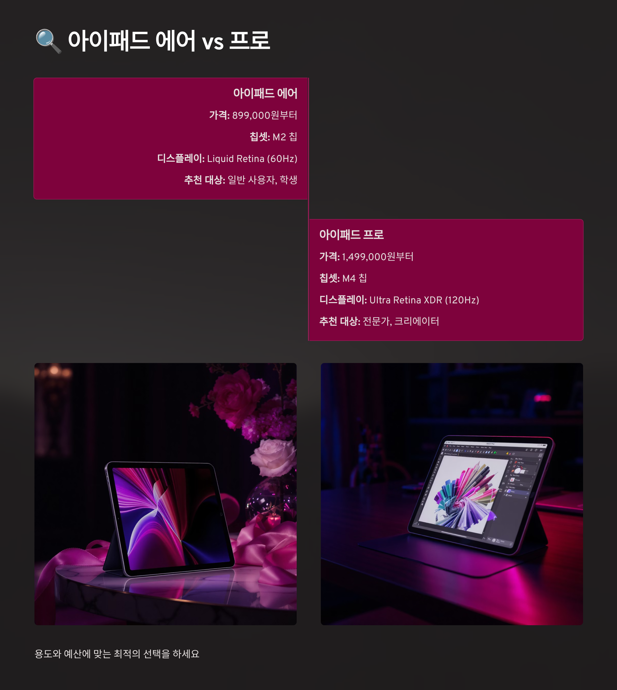 🔍 아이패드 에어와 프로 비교분석