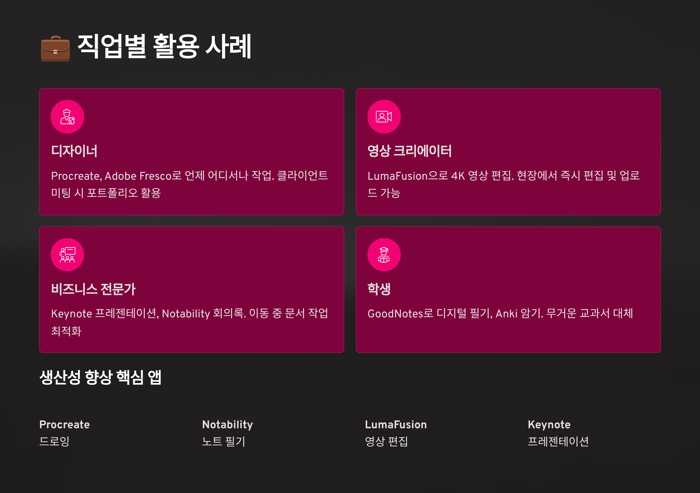 | 직업 | 추천 앱 | 주요 활용 |