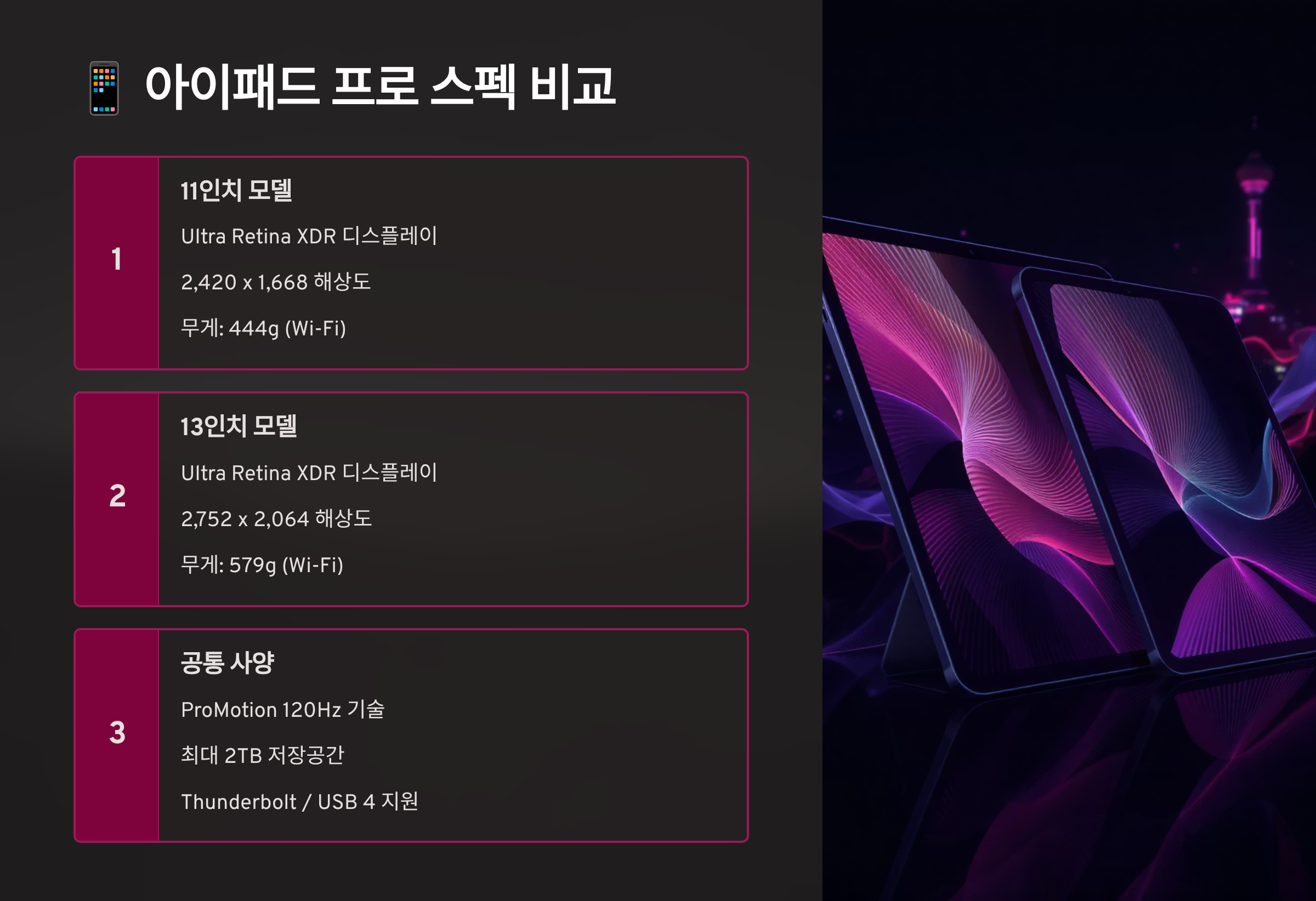 🔧 아이패드 프로 세부 스펙 비교표