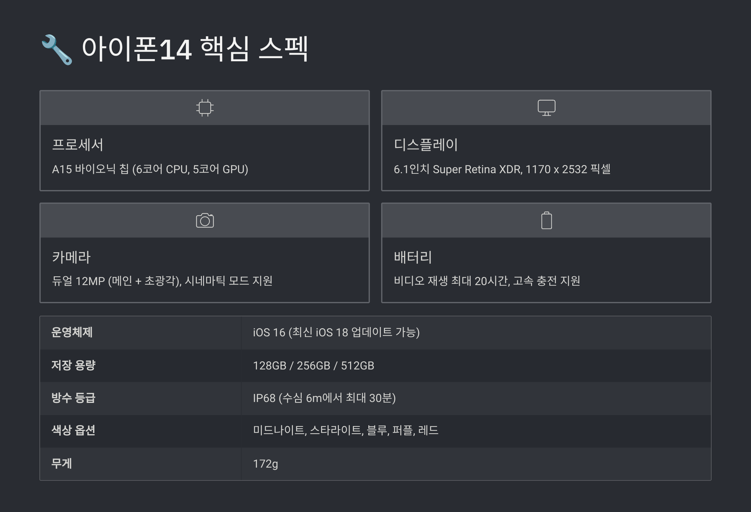 📋 아이폰 14 상세 스펙표