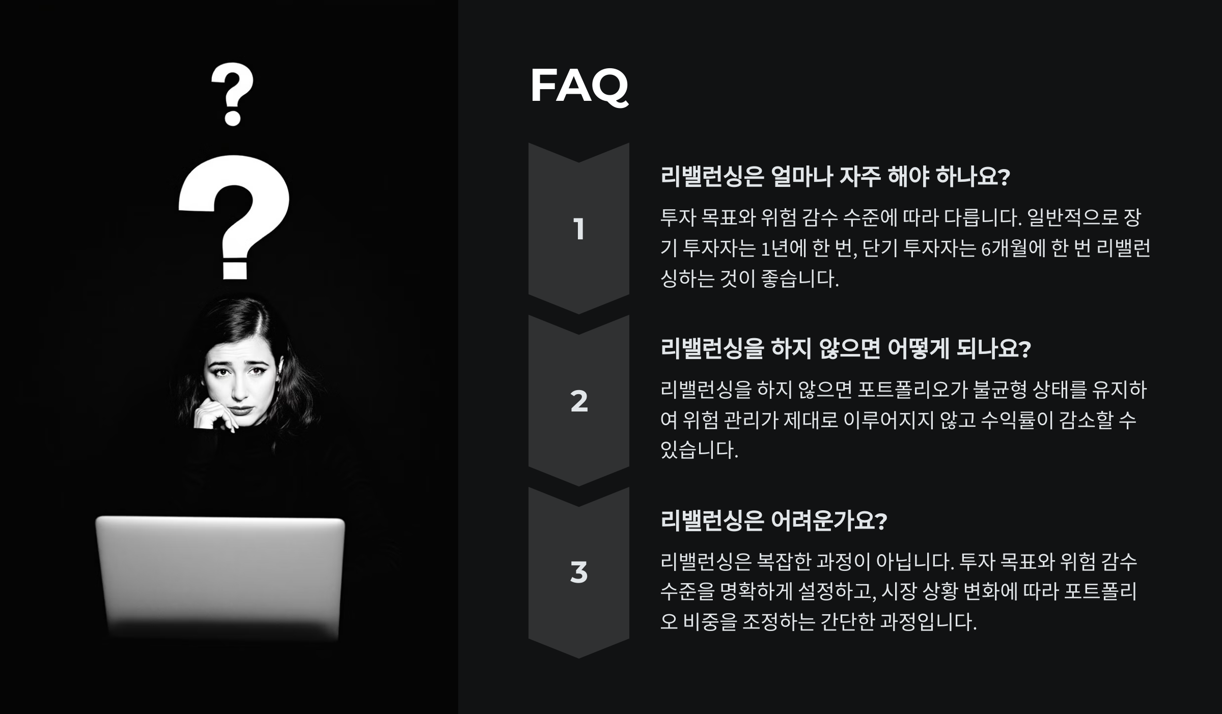 A1. 네! 기본적인 투자 비율을 설정하고 정기적으로 점검하는 것부터 시작하면 돼요.