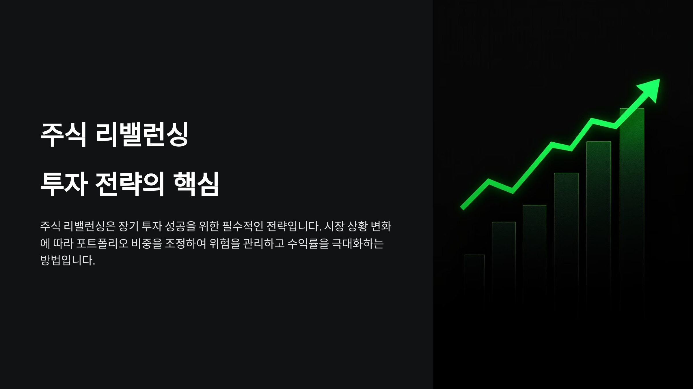 이 글에서는 주식 리밸런싱의 개념부터 중요성, 유형, 실행 방법, 최적의 리밸런싱 주기 및 유의할 점까지 자세히 다룰 거예요. 꾸준한 리밸런싱을 통해 안정적인 투자 성과를 내는 방법을 배워보세요.