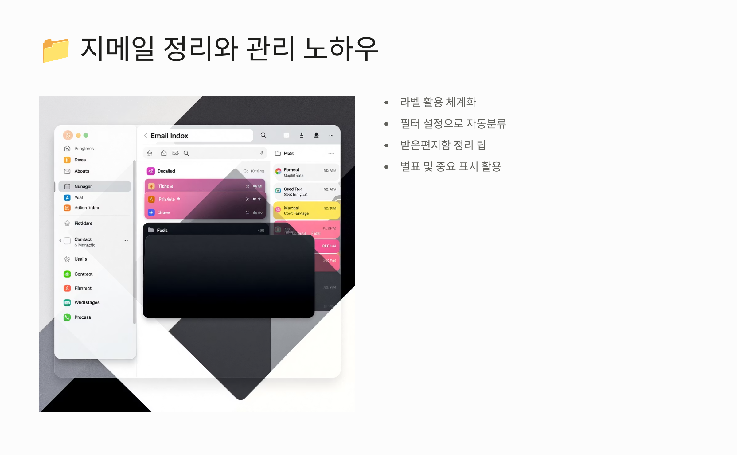라벨 시스템을 효과적으로 구축하는 게 중요해요. 프로젝트별, 고객별, 우선순위별로 라벨을 만들고 색상을 지정하면 한눈에 구분할 수 있습니다. 중첩 라벨을 사용하면 더 세밀한 분류가 가능해요. 예를 들어 '프로젝트' 라벨 아래에 'A프로젝트', 'B프로젝트' 같은 하위 라벨을 만들 수 있답니다.