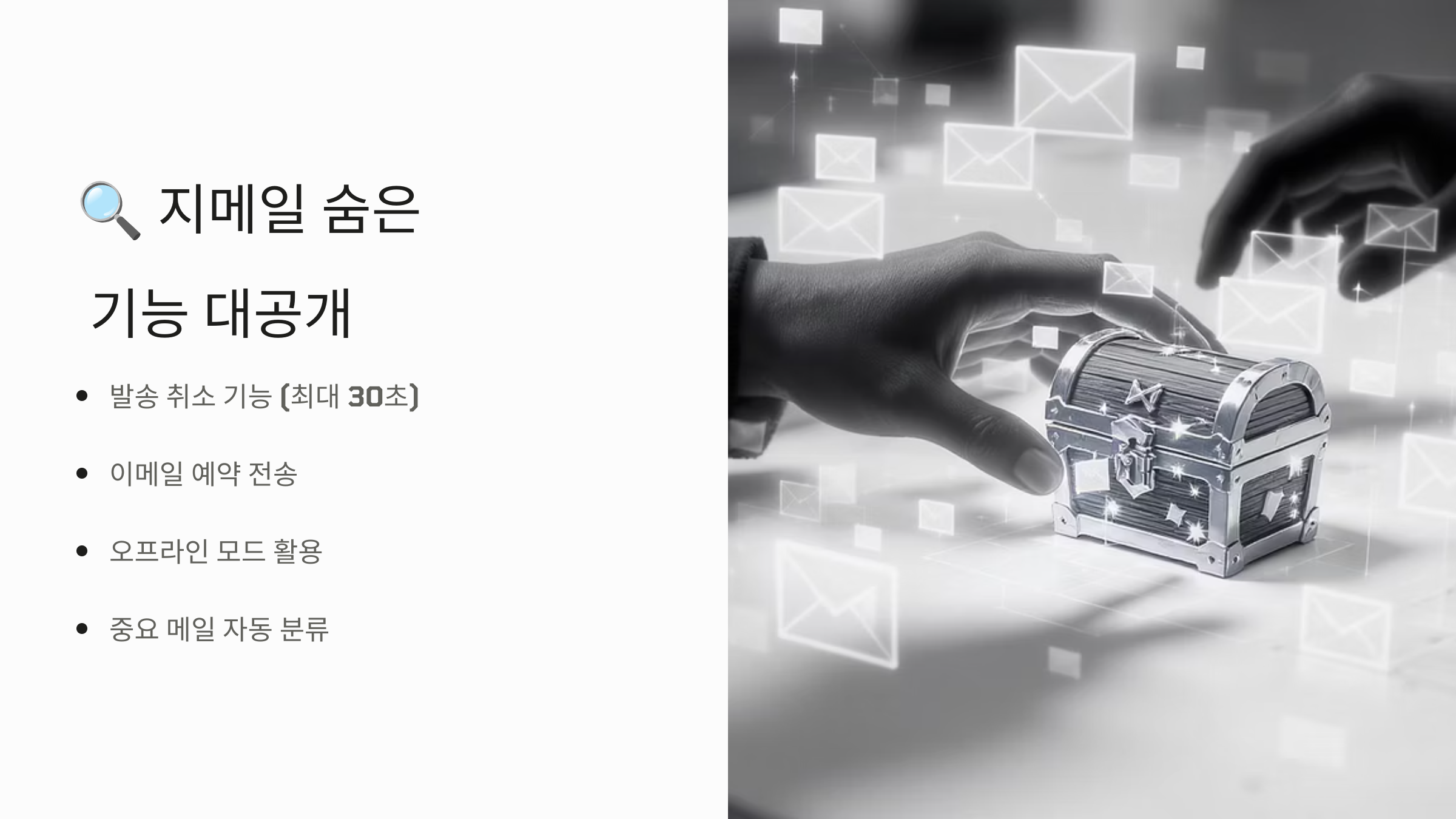 나는 생각했을 때 지메일의 가장 유용한 숨은 기능 중 하나는 '되돌리기' 기능이에요. 실수로 이메일을 삭제했거나 보관처리했을 때, 화면 하단에 나타나는 '되돌리기' 링크를 클릭하면 즉시 원상 복구됩니다. 이 알림은 몇 초만 표시되니 빠르게 클릭해야 해요.