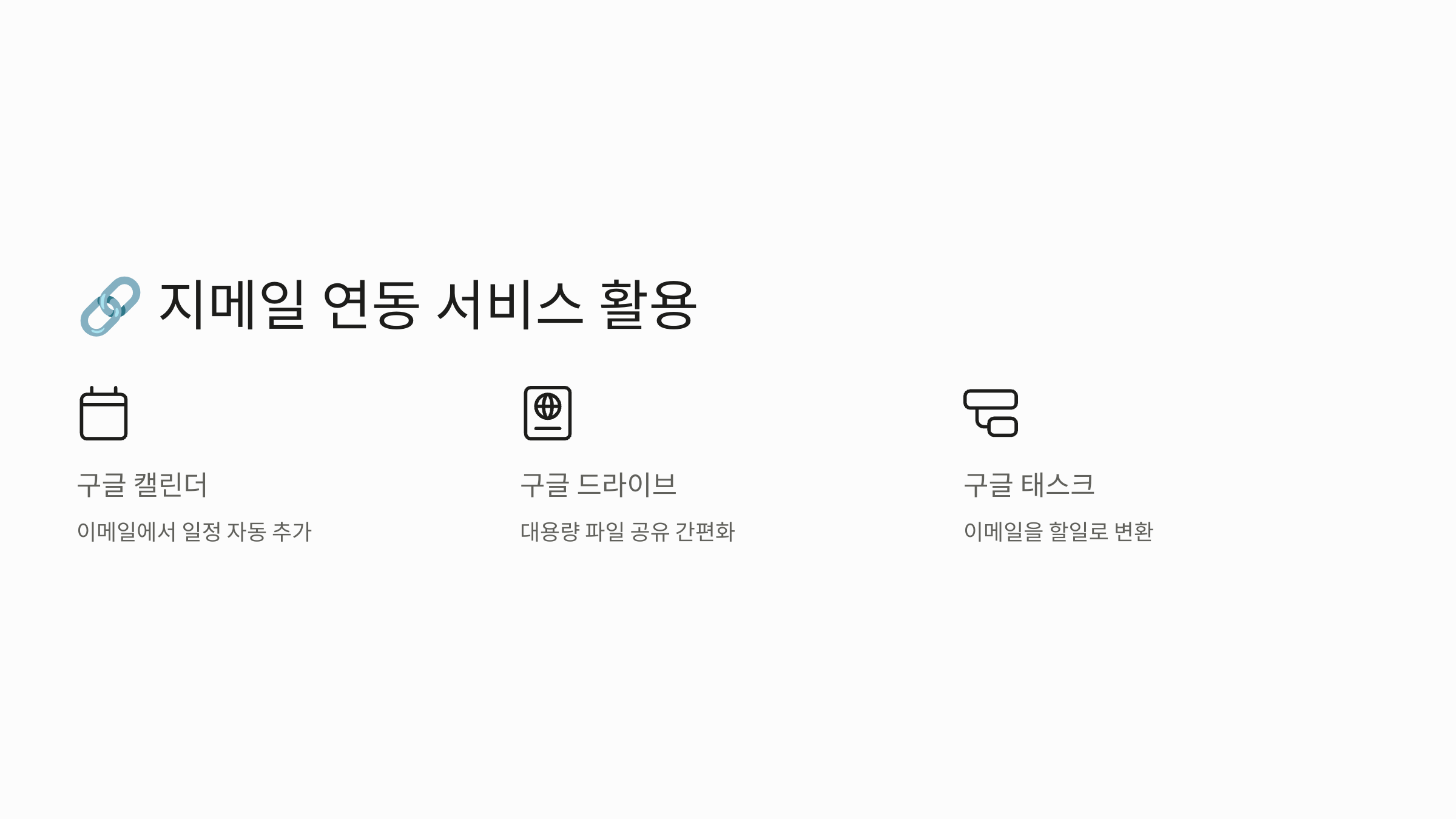 지메일의 진정한 힘은 다른 구글 서비스와의 완벽한 연동에서 나와요. 구글 캘린더와의 연동부터 살펴볼게요. 이메일에서 날짜와 시간이 언급되면 자동으로 캘린더 일정 추가 옵션이 나타납니다. 항공권이나 호텔 예약 확인 이메일은 자동으로 캘린더에 일정이 추가되어 여행 계획을 관리하기 편해요.