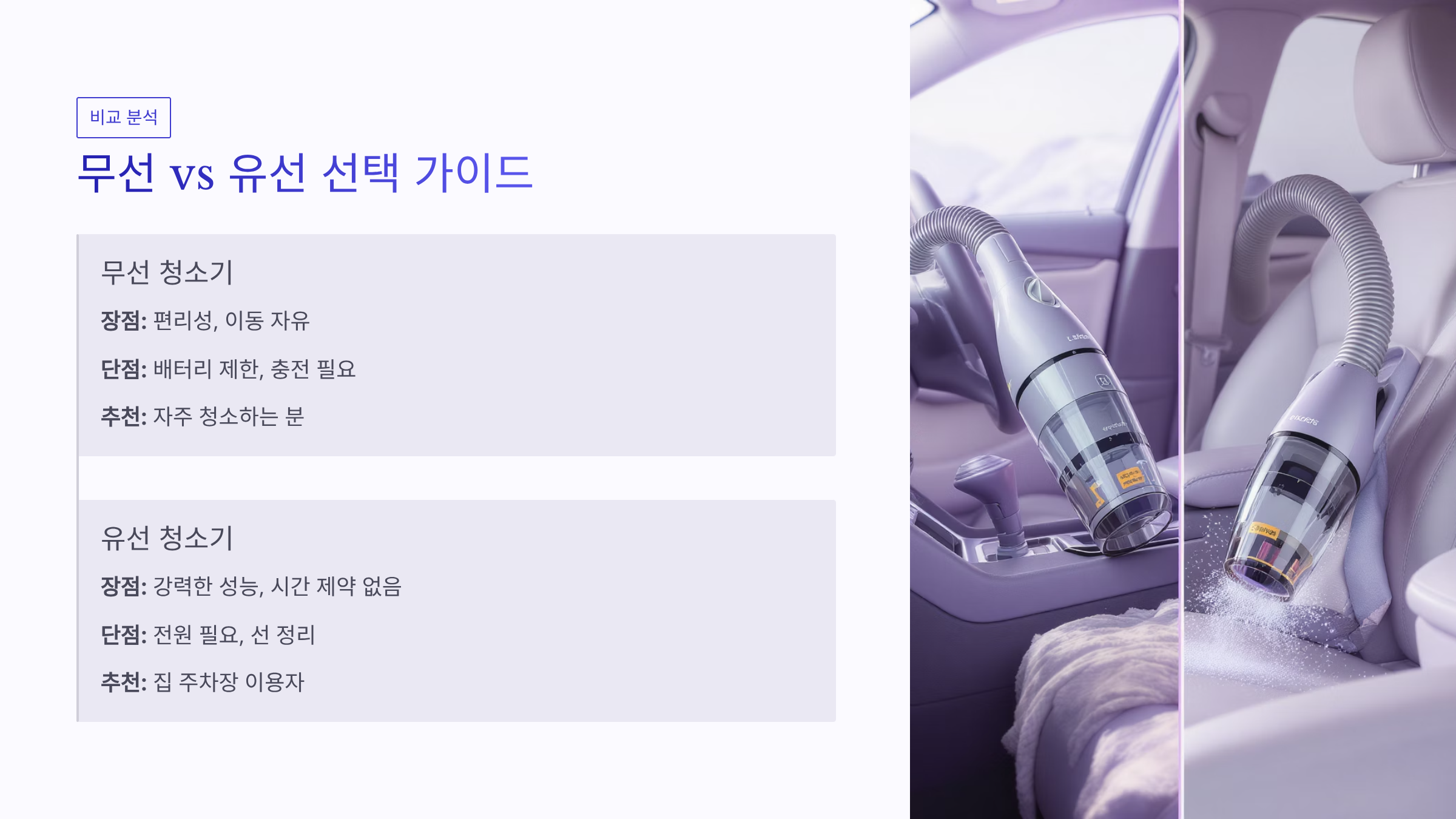 🔋 무선 vs 유선 차량용 청소기 선택법