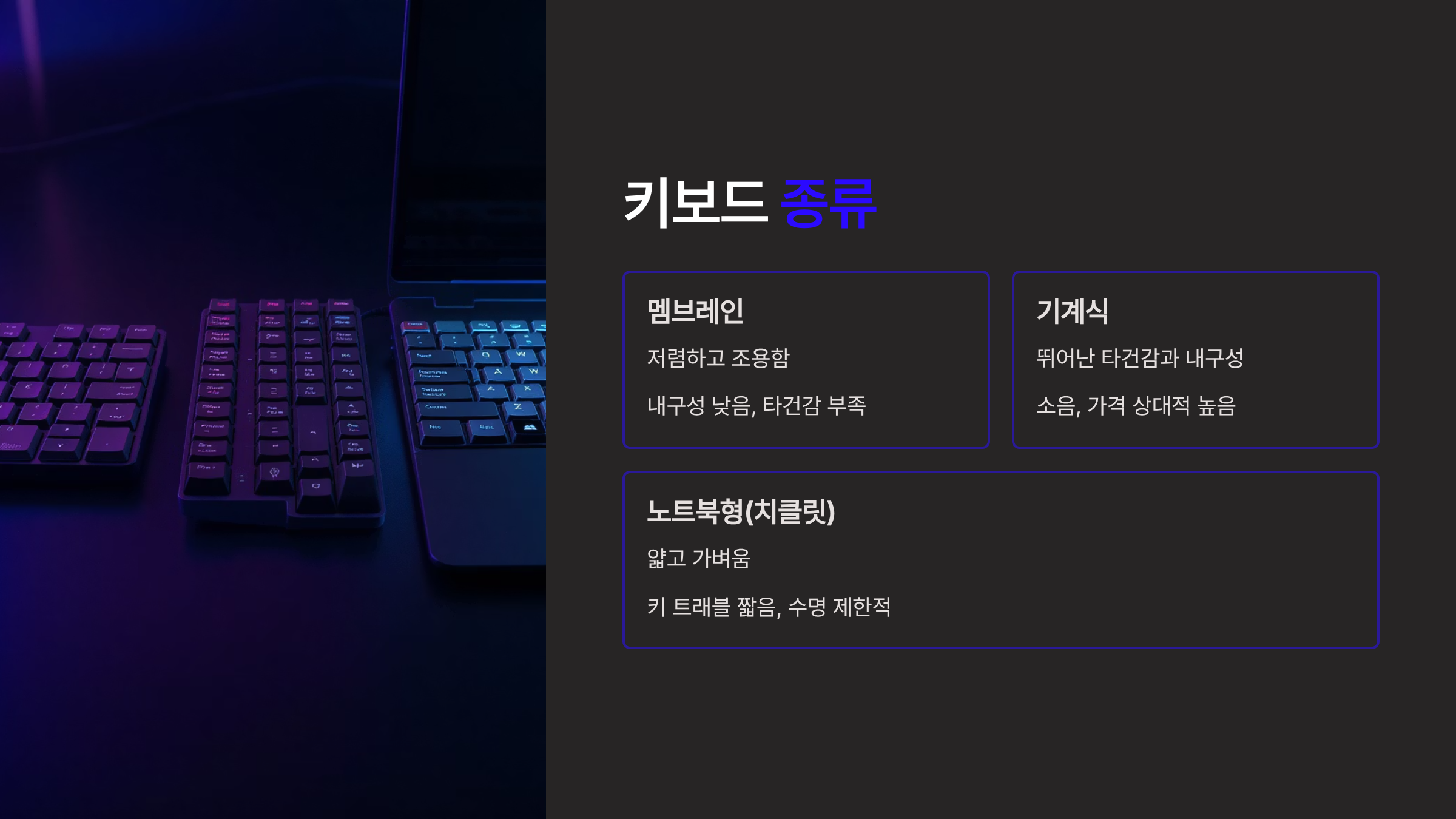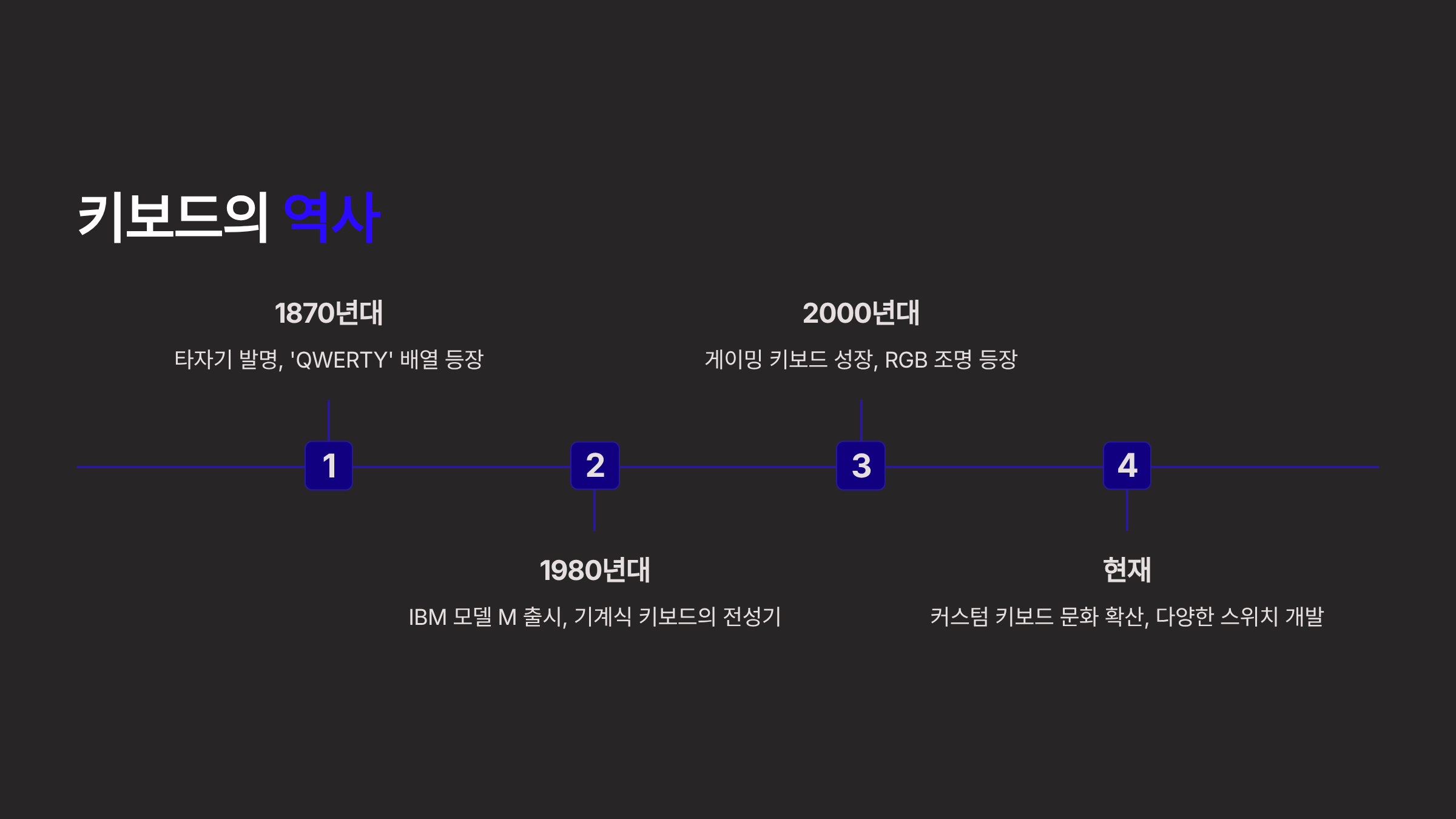 | 2010년대 | 게이밍 키보드 | RGB, 커스텀 문화 |