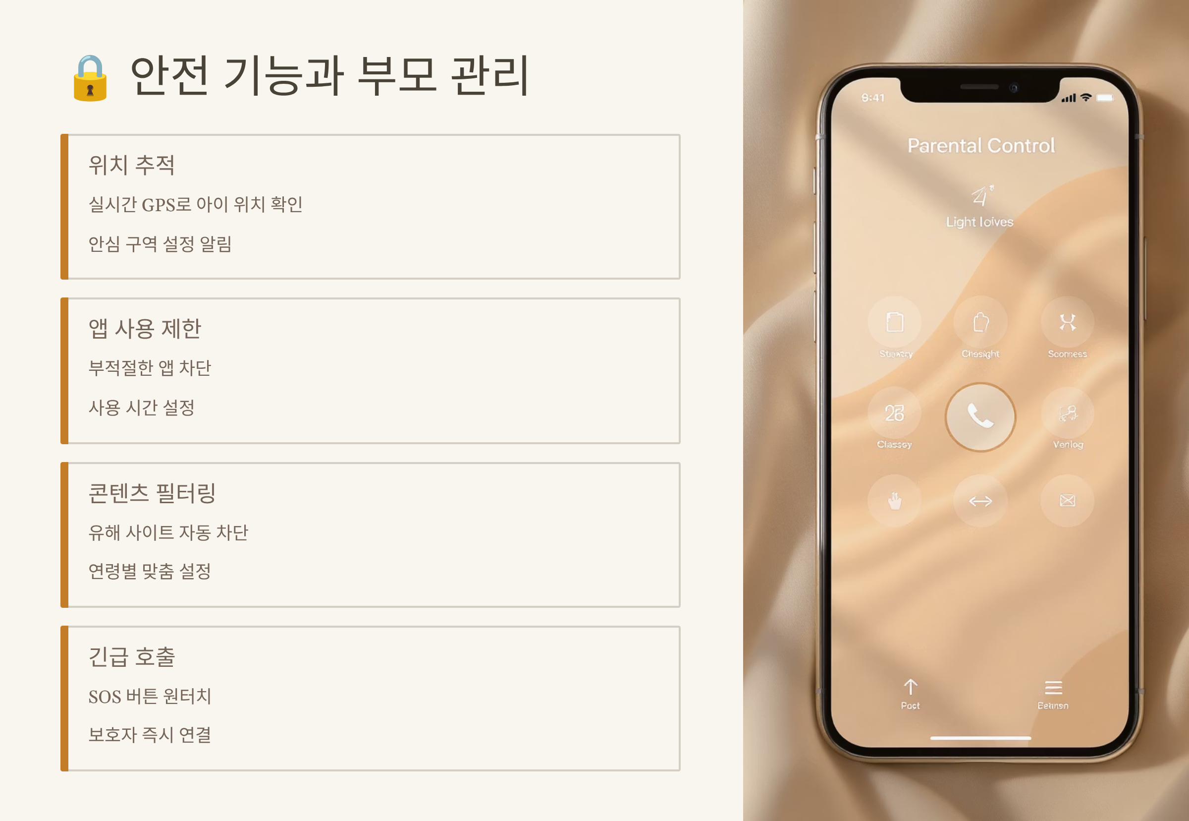 | SOS 버튼 | 필수 | 긴급 상황 시 부모 자동 연결 |