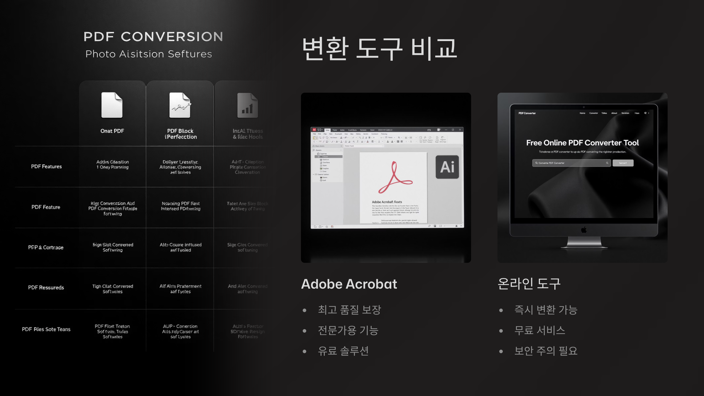 어도비 아크로뱃은 PDF의 창시자답게 가장 강력한 변환 기능을 제공해요. 텍스트 인식(OCR), 양식 작성, 전자 서명 등 종합적인 PDF 관리가 가능하답니다. 구독료가 비싸긴 하지만 전문적인 작업을 하는 사람들에게는 필수 도구예요. 특히 복잡한 레이아웃이나 다국어 문서를 다룰 때는 아크로뱃만 한 도구가 없어요.