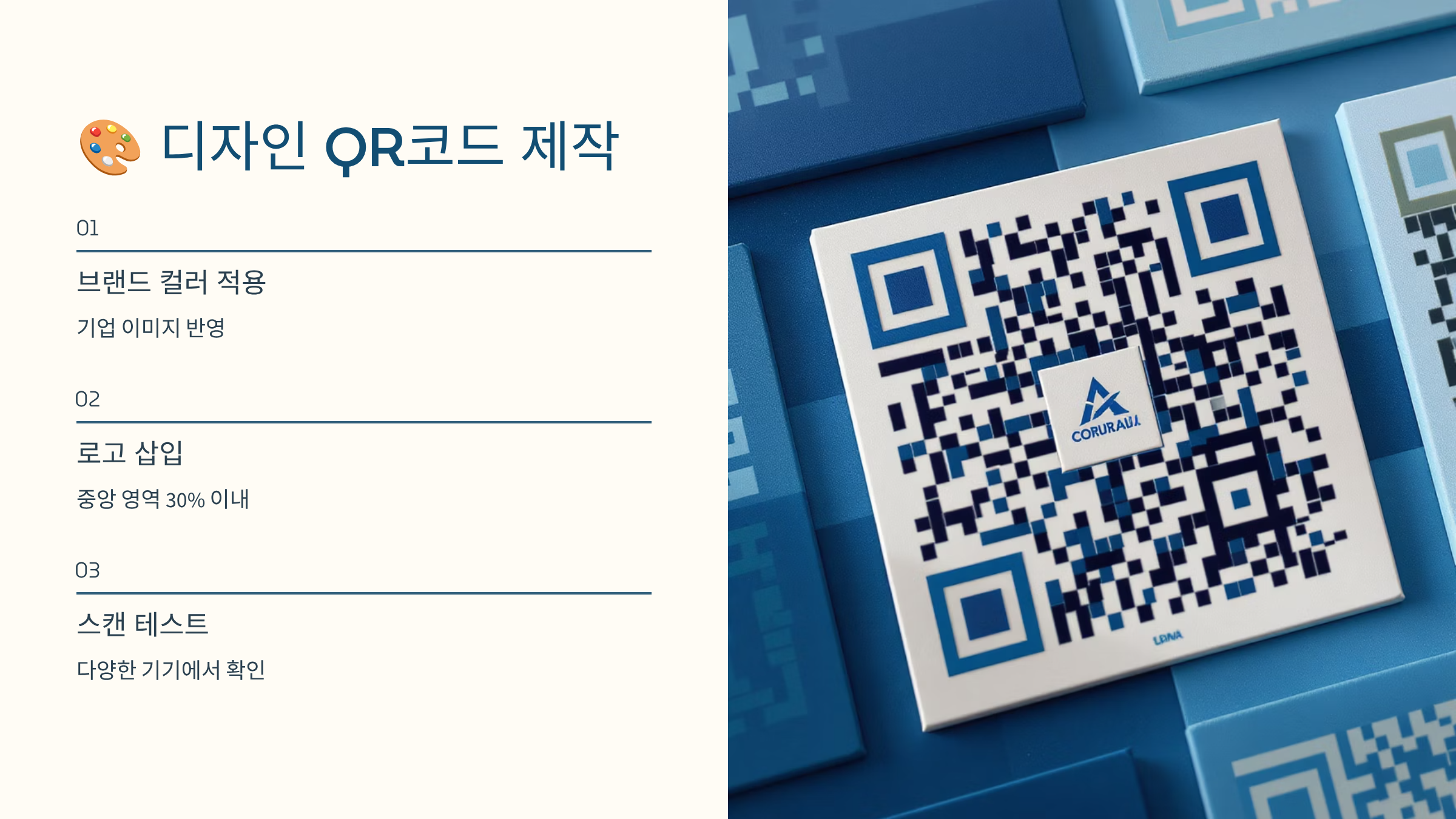 일반적인 흑백 QR코드도 충분히 기능적이지만, 브랜드 아이덴티티를 담은 디자인 QR코드는 훨씬 매력적이에요. 로고를 넣거나 색상을 변경하고, 독특한 패턴을 적용하면 QR코드도 훌륭한 디자인 요소가 될 수 있어요. 다만 너무 과한 디자인은 인식률을 떨어뜨릴 수 있으니 균형을 잘 맞춰야 해요.