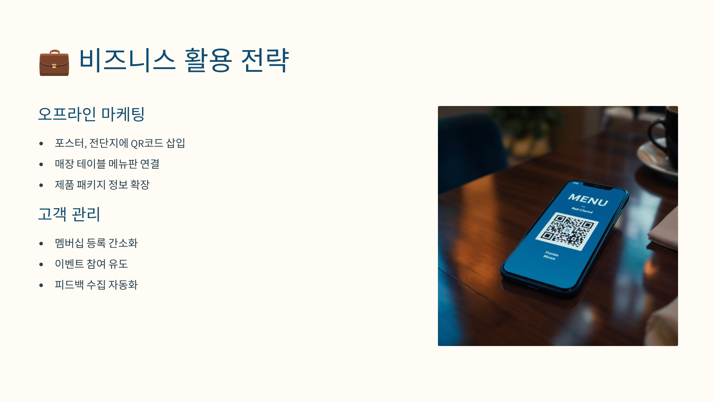 QR코드는 오프라인과 온라인을 연결하는 가교 역할을 하면서 비즈니스에 혁신을 가져왔어요. 고객 경험 개선부터 마케팅 효율화, 운영 비용 절감까지 다양한 효과를 얻을 수 있어요. 특히 팬데믹 이후 비대면 서비스가 일상화되면서 QR코드는 필수 비즈니스 도구가 되었답니다. 성공적인 비즈니스 활용 전략을 자세히 알아볼게요.