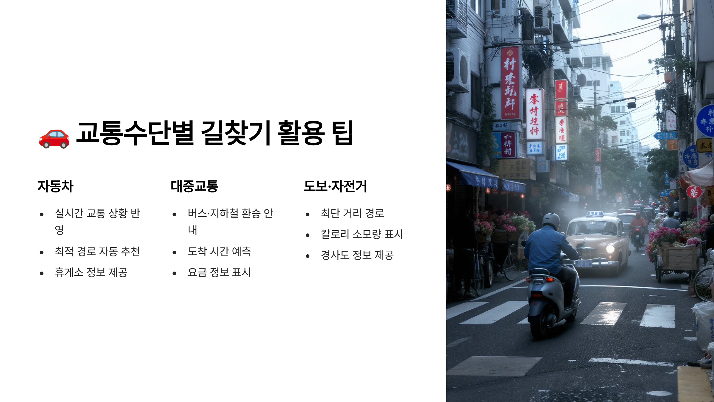 🚗 교통수단별 길 찾기 활용 팁
