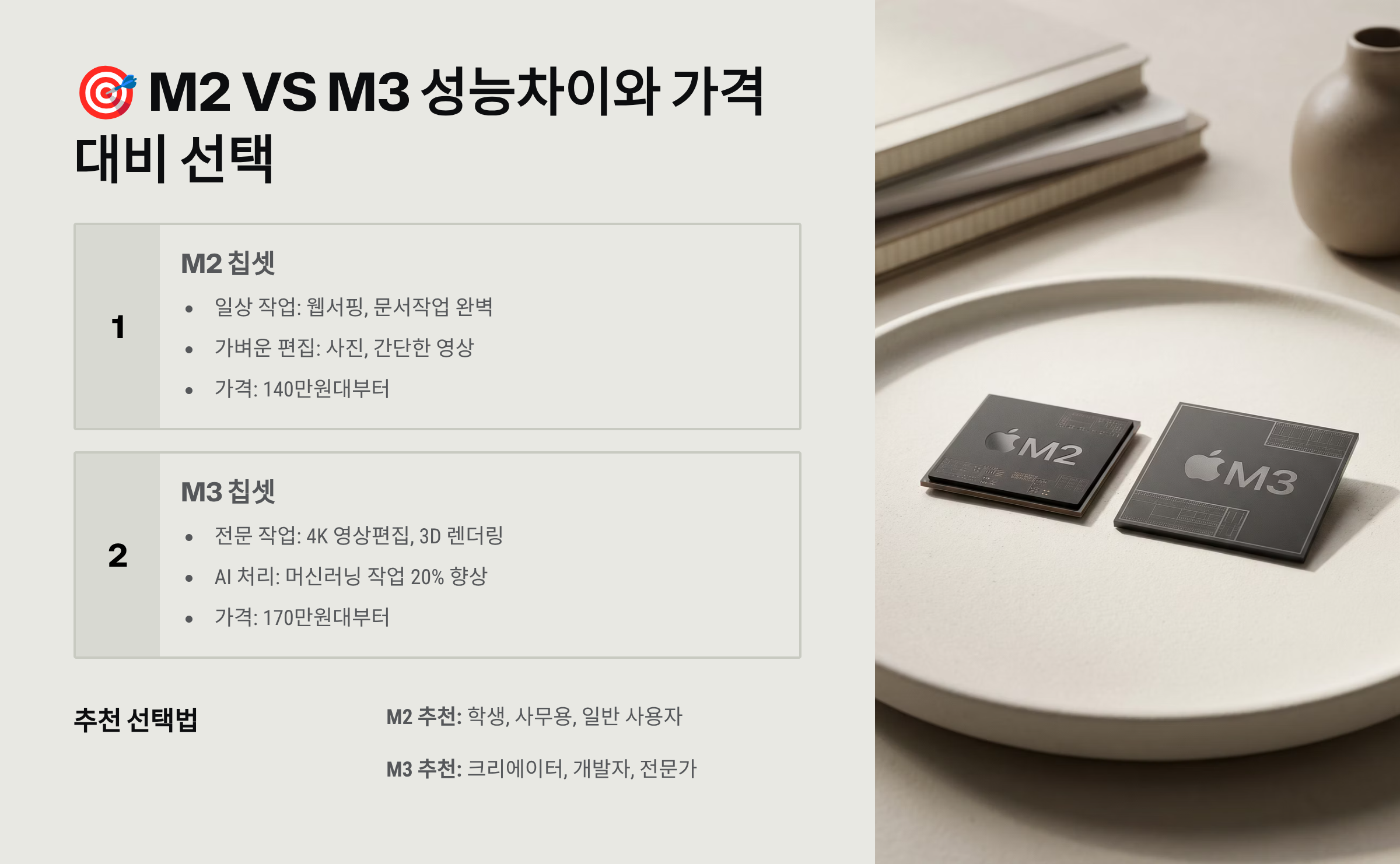 🎯 M2 vs M3 성능차이와 가격대비 선택법
