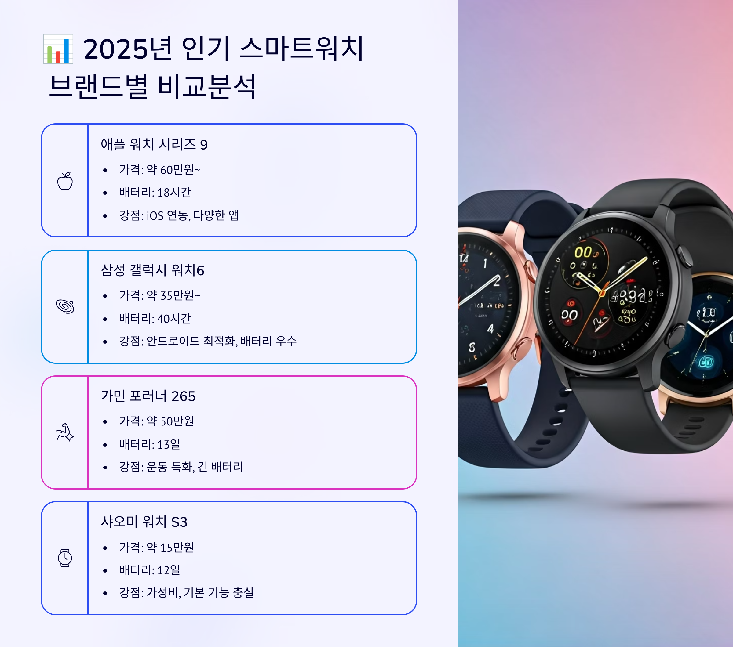 📊 2025년 인기 스마트워치 브랜드별 비교분석