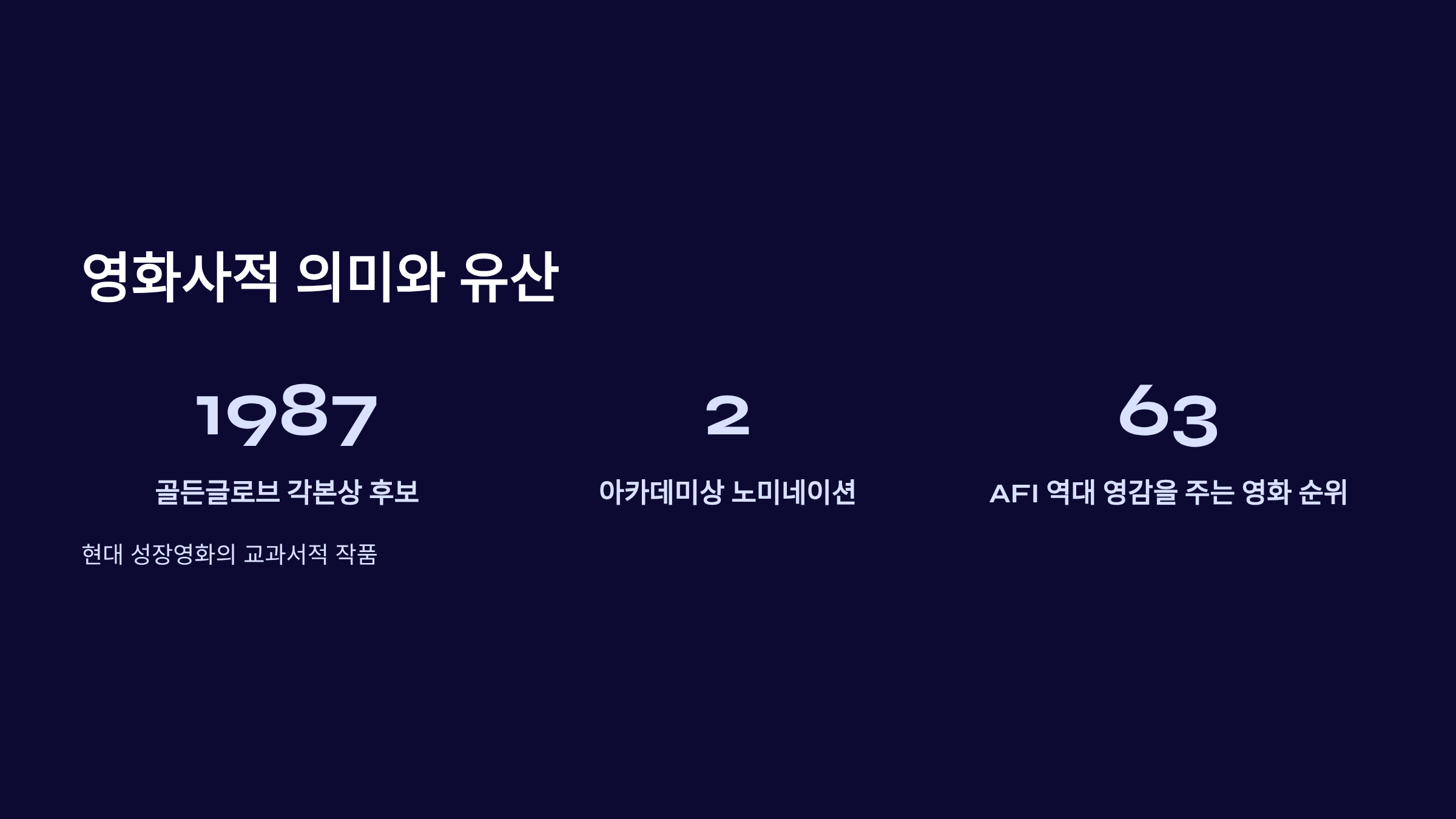 | 미국영화연구소 | 100대 영화 | 선정 |
