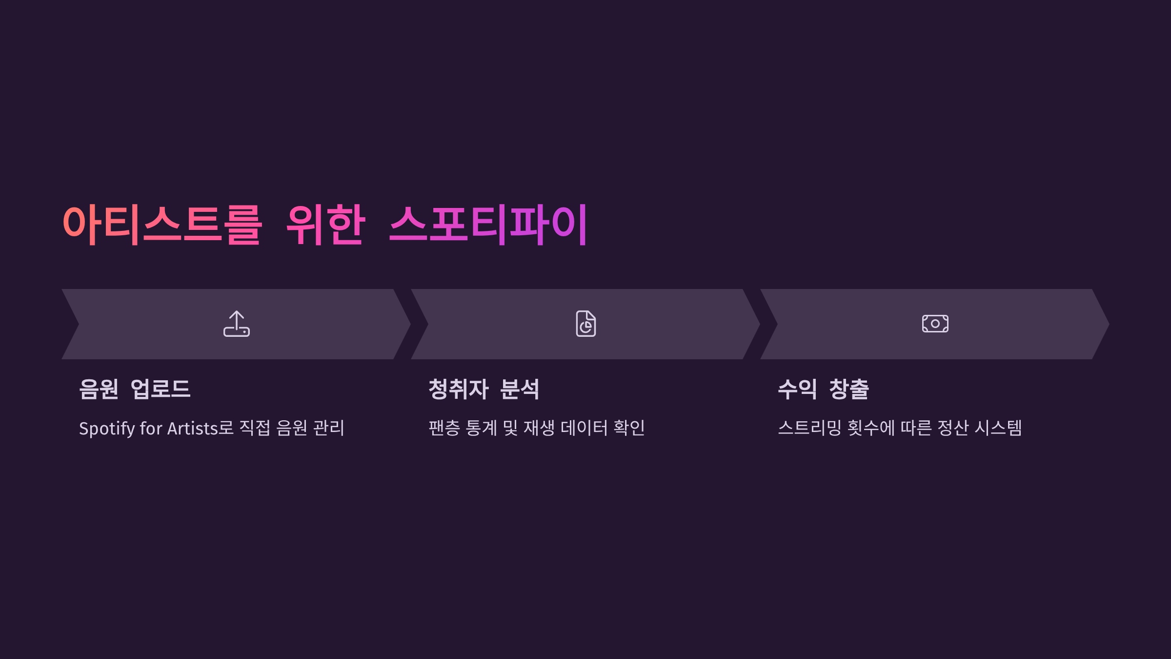 스포티파이는 리스너뿐만 아니라 아티스트에게도 중요한 플랫폼이에요. 전 세계 수억 명의 리스너에게 음악을 전달할 수 있는 기회를 제공하고, 다양한 도구와 데이터로 아티스트의 성장을 돕고 있답니다. 인디 아티스트부터 메이저 가수까지 모두에게 열려 있는 기회예요.